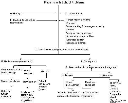 The office assessment of children with school problems include the following steps: (Refer algorithm)