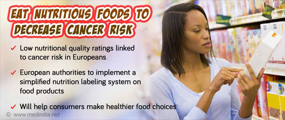 Food items which have low nutritional value are associated with cancer risk say the scores obtained on the British nutrient profiling system. The study suggests a broad potential for the use of nutrition-based packaging label to help people make healthy food choices.