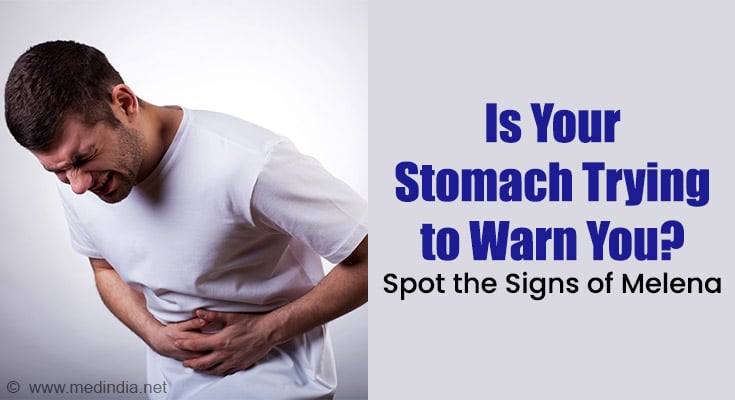 - Melena appears as black, sticky, foul smelling stool and often signals upper GI bleeding