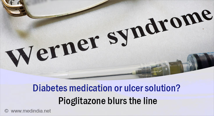 Pioglitazone, a diabetes medication, shows promise in preventing skin ulcers in Werner Syndrome. It reduces inflammation and boosts wound healing by activating PPARγ proteins. #ulcers #woundhealing #medindia