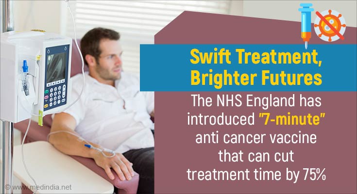 - NHS England has introduced a rapid anti-cancer vaccine that can reduce treatment time for some patients by 75%, administered in as little as 7 minutes