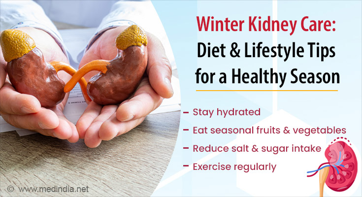 In addition, winter is when we typically overindulge in comfort foods, the majority of which are heavy in sugar and salt. It may have adverse effects on the kidneys. Thus, to promote kidney function, eat a balanced winter diet high in fiber and good fats. Additionally, it aids with blood pressure and blood sugar regulation, both of which are critical for long-term kidney function. It's also critical to limit processed snacks, high-sodium foods, and excessive animal protein intake because these might overtax the kidneys.