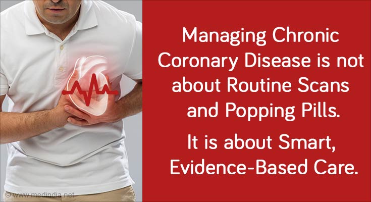 The latest American Heart Association (AHA) guidelines warn against periodical unneccessary tests. According to the AHA, normal follow-ups do not require stress testing or a CT scan if the patient is on guideline-directed therapy and has not had any changes in symptoms or functional status. The AHA also advises against nutrition or nutritional supplements for persons with CCD, such as omega-3 fatty acids, vitamins C, D, or E, beta-carotene, or calcium (1✔ ✔Trusted Source2023 AHA/ACC/ACCP/ASPC/NLA/PCNA Guideline for the Management of Patients With Chronic Coronary Disease: A Report of the American Heart Association/American College of Cardiology Joint Committee on Clinical Practice Guidelines