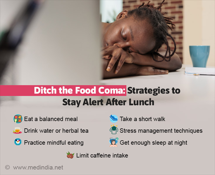 - Practical tips to avoid feeling sleepy after lunch include eating a balanced meal, staying hydrated, mindful eating, taking short walks, managing stress, prioritizing nighttime sleep, and moderating caffeine intake